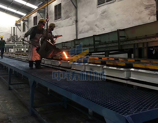1、全自動(dòng)造型機(jī)打出來(lái)的砂型通過(guò)地軌控制系統(tǒng)運(yùn)輸,省掉人工拉砂型;